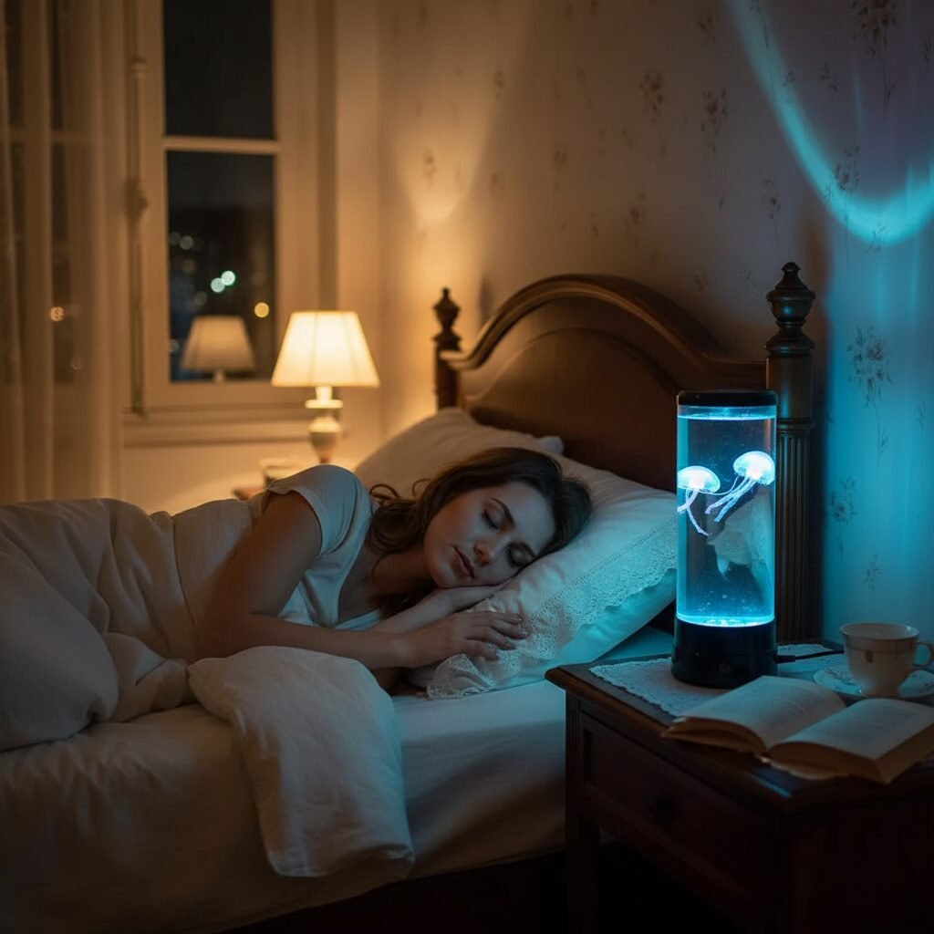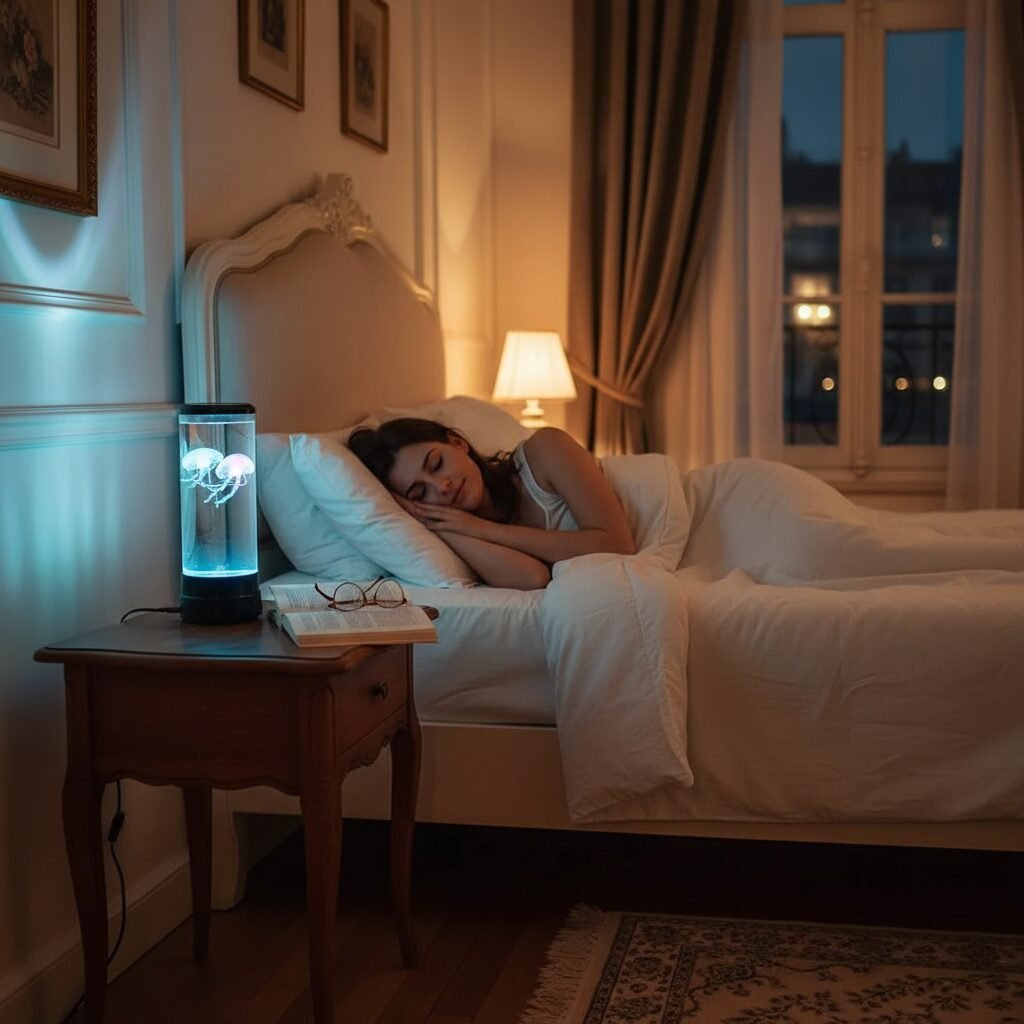 lampe d’aquarium LED avec méduses artificielles pour créer une ambiance marine apaisante.