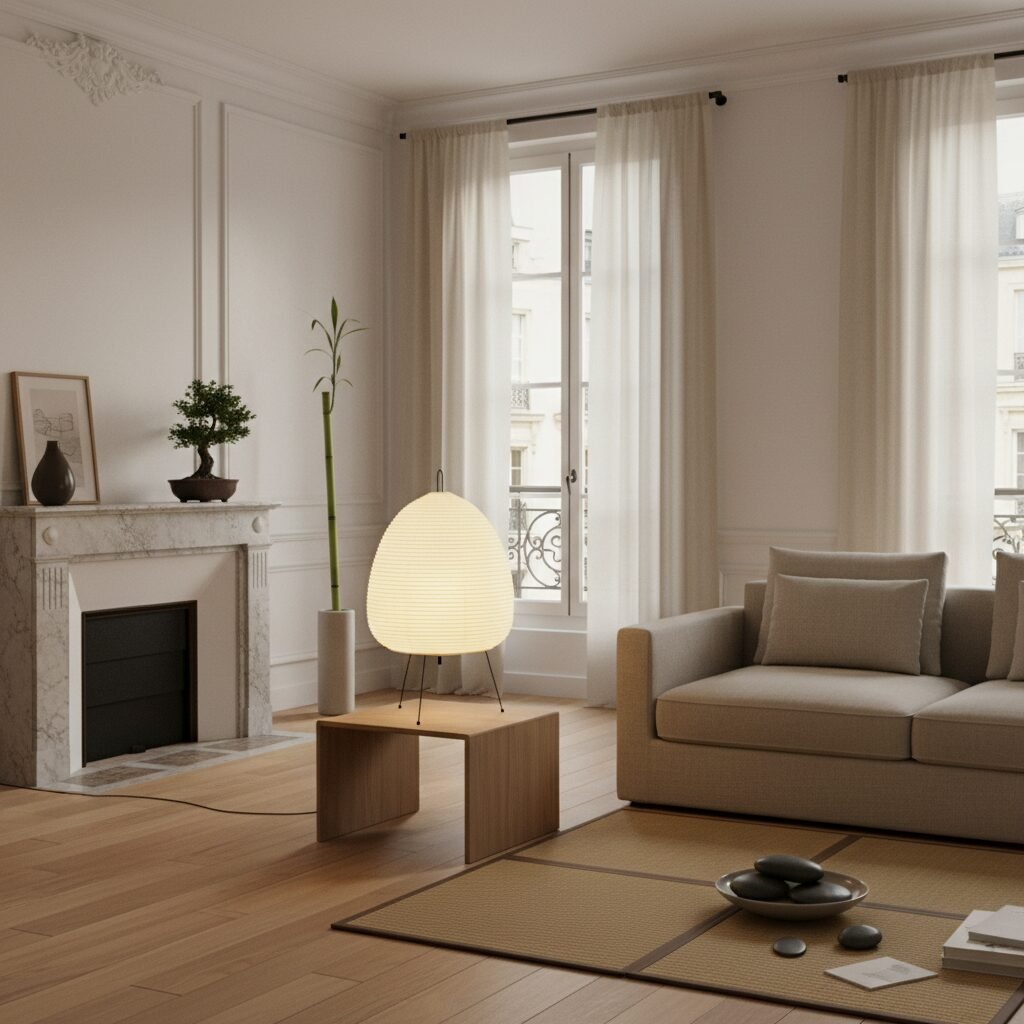 Matériaux de qualité : base en métal solide avec un abat-jour en papier de riz/tissu pour une esthétique naturelle et épurée.