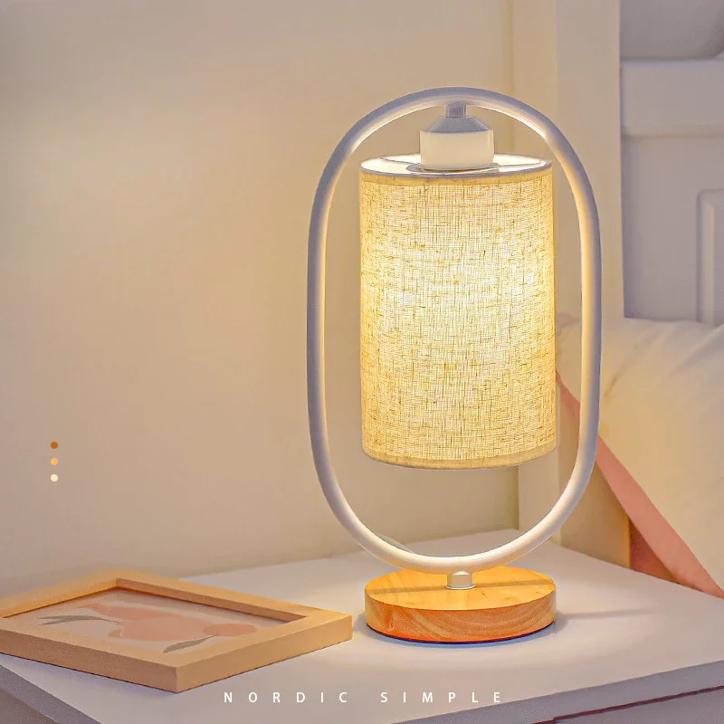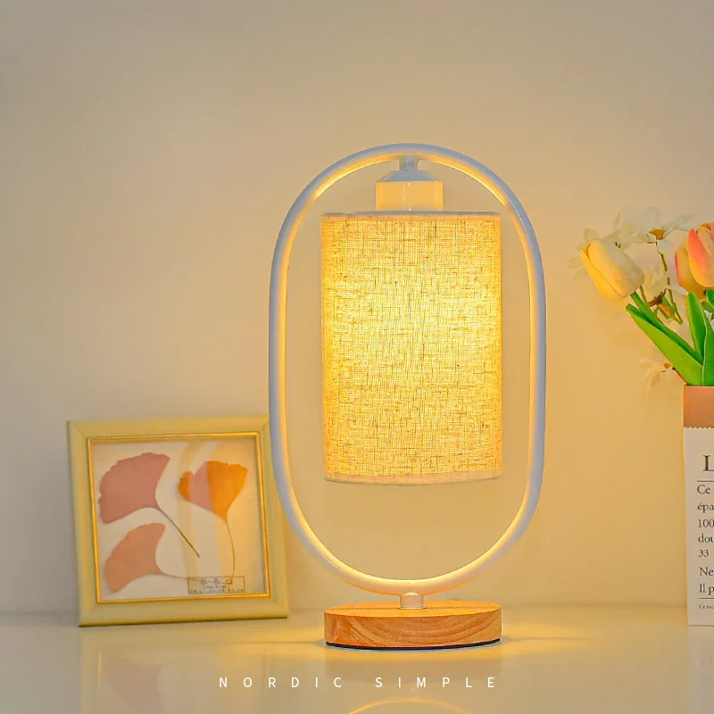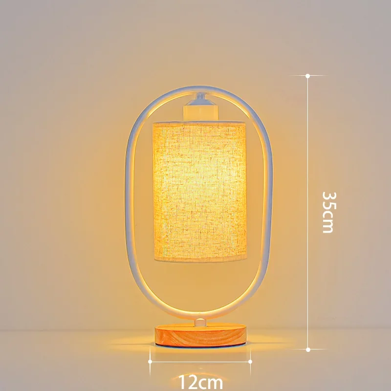 Lampe de table de table en bois et métal à abat-jour textile