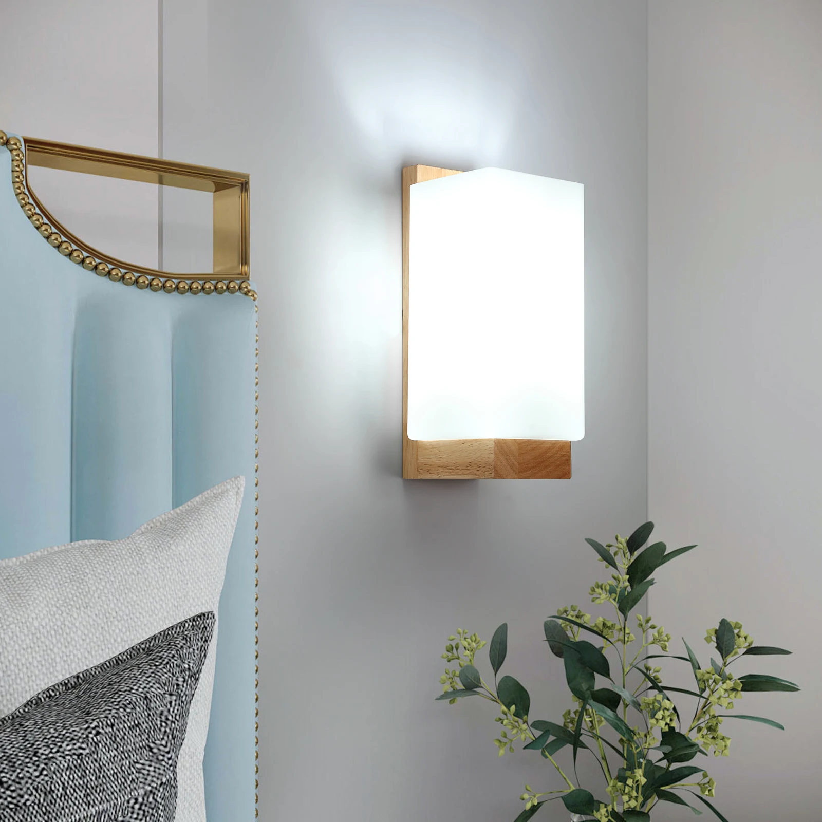 Ce luminaire mural en bois et verre diffuse une lumière douce et homogène, parfaite pour créer une ambiance chaleureuse dans une chambre, un salon ou un couloir. L’abat-jour en verre blanc adoucit la lumière et évite l’éblouissement, tandis que la base en bois naturel apporte une touche authentique et rassurante à votre décoration intérieure.