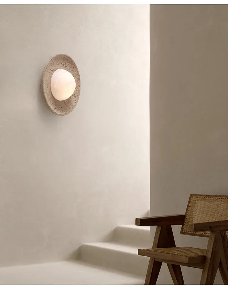 Applique murale en pierre wabi-sabi – Luminaire mural rond