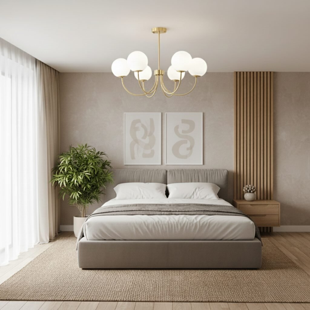 Grâce à son design équilibré et aérien, ce luminaire plafond devient un élément décoratif central. Il s’intègre parfaitement dans des intérieurs contemporains, modernes ou chic, en apportant luminosité et caractère sans surcharge visuelle.