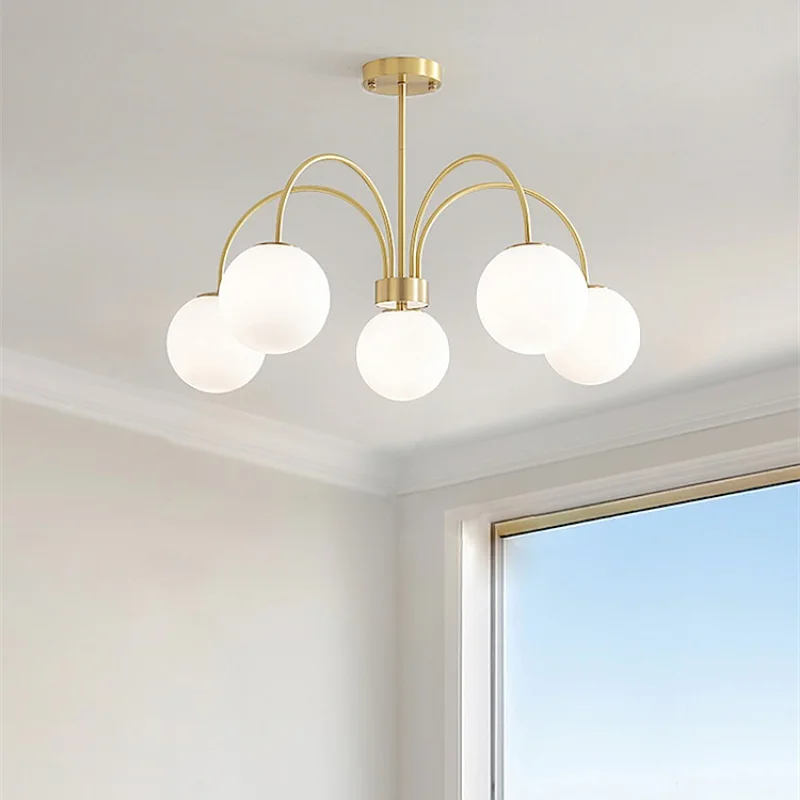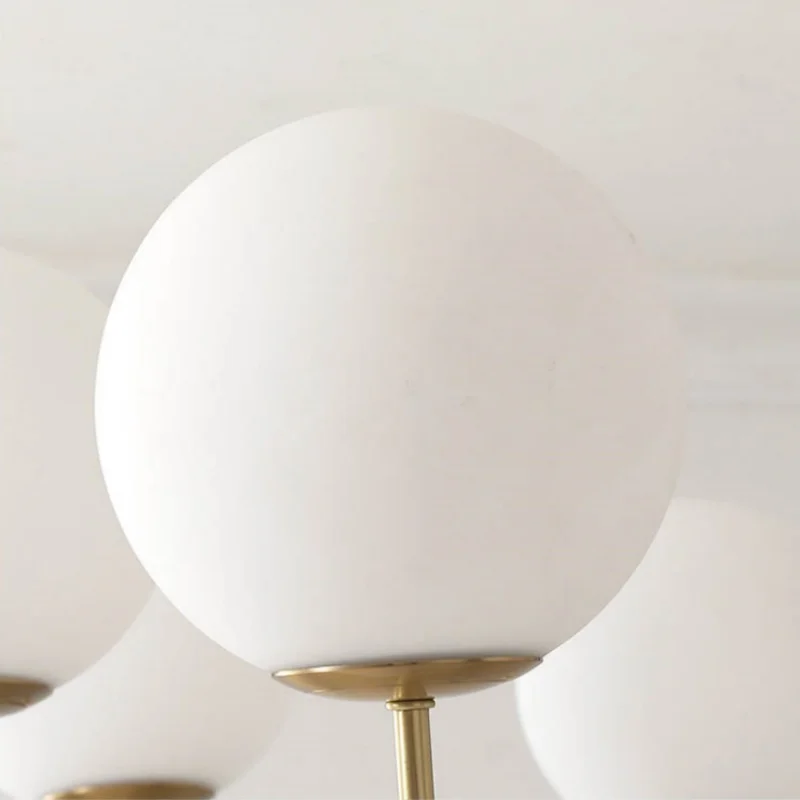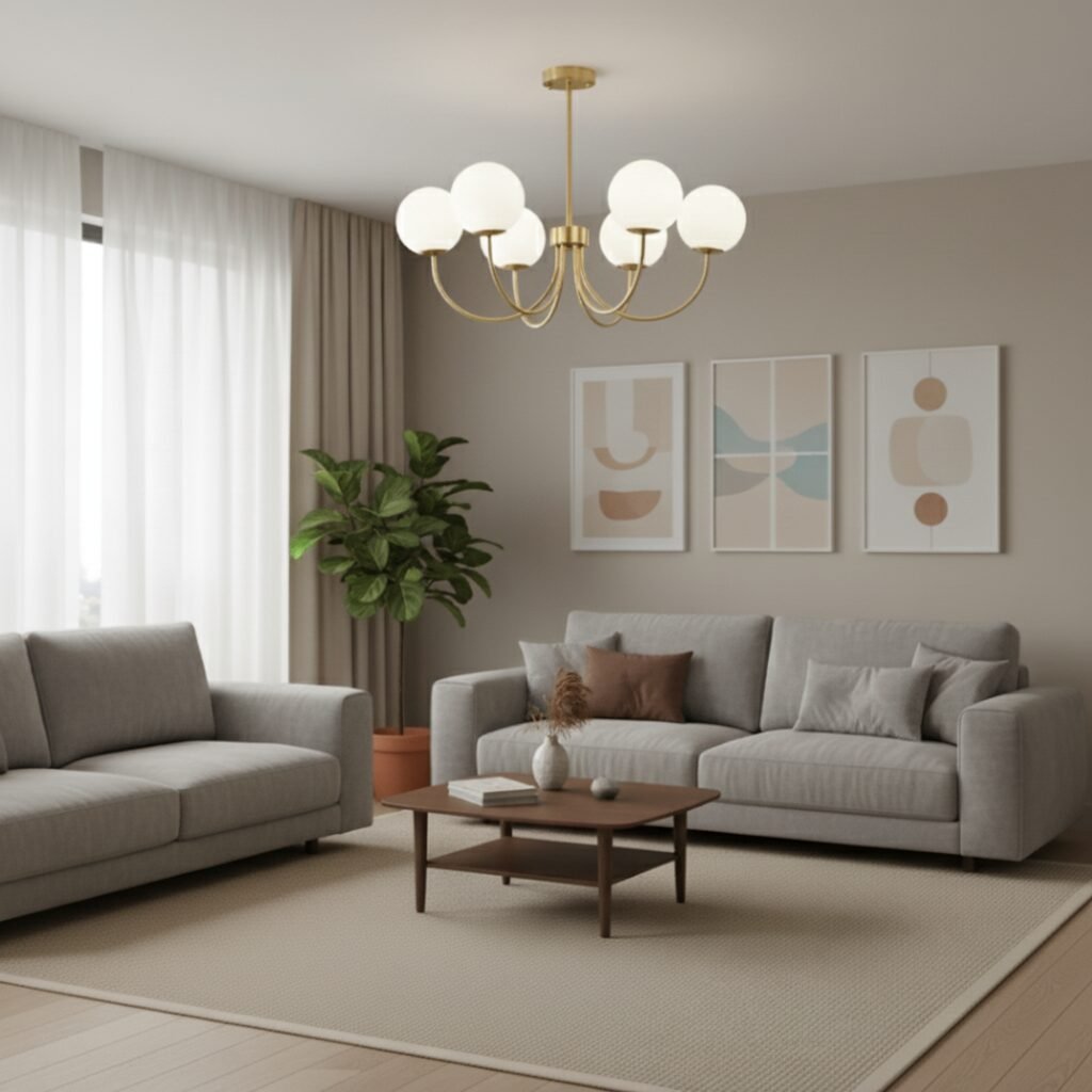 Ce luminaire plafond moderne séduit par sa composition harmonieuse de globes en verre givré et sa structure aux lignes courbes élégantes. La diffusion de la lumière vers le haut et vers le bas crée un éclairage enveloppant, idéal pour un salon, une salle à manger ou une grande chambre. Les globes arrondis apportent une touche de douceur visuelle tout en assurant une excellente répartition lumineuse.
