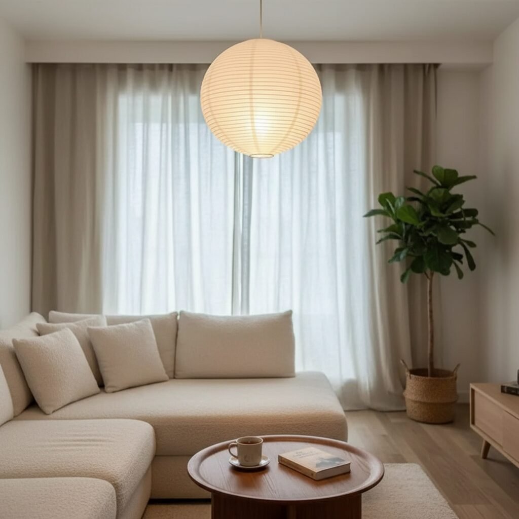 Ce luminaire suspendu en papier transforme immédiatement une pièce en ajoutant une lumière douce et enveloppante. Son esthétique japonaise minimaliste s’adapte parfaitement aux chambres, aux salons ou aux cafés qui recherchent une atmosphère zen. Grâce à sa compatibilité E27, vous choisissez librement le type d’ampoule pour ajuster la luminosité et personnaliser votre ambiance.
