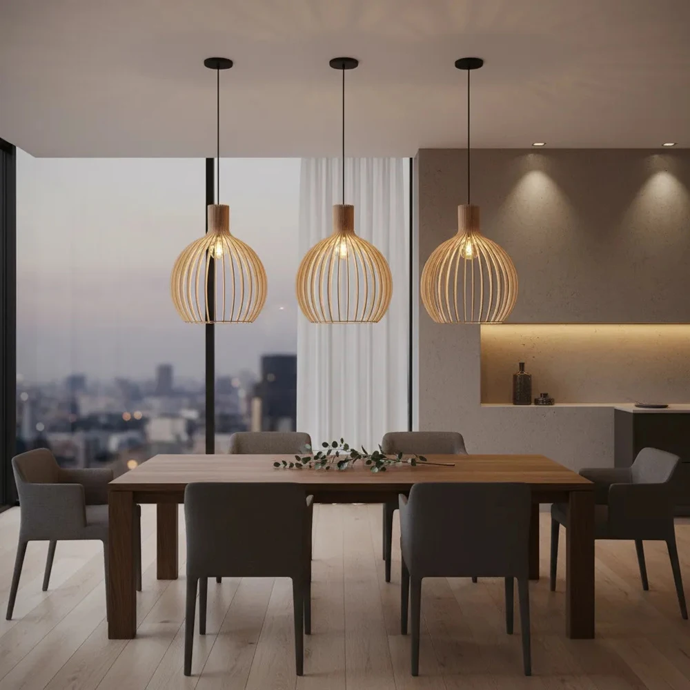 Un luminaire suspendu en bois pour une atmosphère douce et authentique