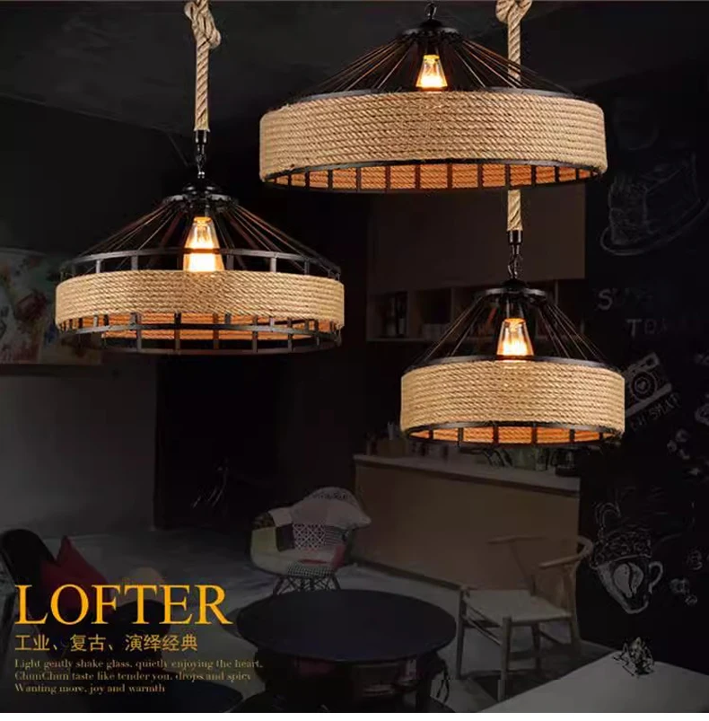 Luminaire suspension naturelle en métal et fibre tressée